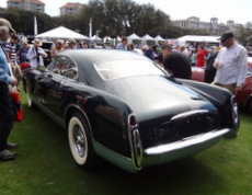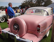 The 1955 Cadillac Elegante is not a Factory Built Custom or Concept Car from General Motors. This Special One-Off Car resulted from the desire of two men, commercial artist Harry Birdsall and contractor Joe Masscari's desire to build their own version of a Cadillac Dream Car. This 2 seat Roadster started with a Cadillac frame. The chassis and drawings were shipped to Turin, Italy where a Custom Aluminum body was created by Craftsman Rocco Motto. The project took 30 month's to complete. Much of the trim was plated in 24-karat Gold. The Gold Plated trim pieces were cast Brass. The other trim pieces, including the hubcaps were Gold Anodized Aluminum. The paint is an iridescent Mother of Pearl, quite unusual at that time. It was completed at a cost of $30,000 (that's in 1955 money... Wow!).  It arrived back in the states in time to be displayed at the 1955 International Auto show in Yonkers, New York. Birdsall and Masscari had hoped to build and sell 10 copies of their Elegante. Although very popular at the show no orders were placed. Harry Birdsall owned the car until his death in 1960 at which time it was sold. The Elegante disappeared for 37 years until Harry's son, Dick, ran across it stored under a carport in Coconut Grove, Florida. Dick, his brother Bob and grandson Bobby spent the next 16 years bringing this One of a Kind Cadillac back to it's original condition