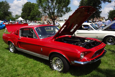 This Red 1967 Shelby GT500 Convertible is a One of of kind Proto-Type Shelby American Styling Car. Convertible Shelby Mustangs were not offered to the public until the 1968 model year. The Car is equipped with some unique trim and accessories not found on the '68 production cars. The car seemed familiar to me when I viewed it and started reading some of it's history that was displayed with the car. I believe at one time this car was being offered for sale in the Volo Auto Museum, (just north of Chicago, in Volo Illinois)